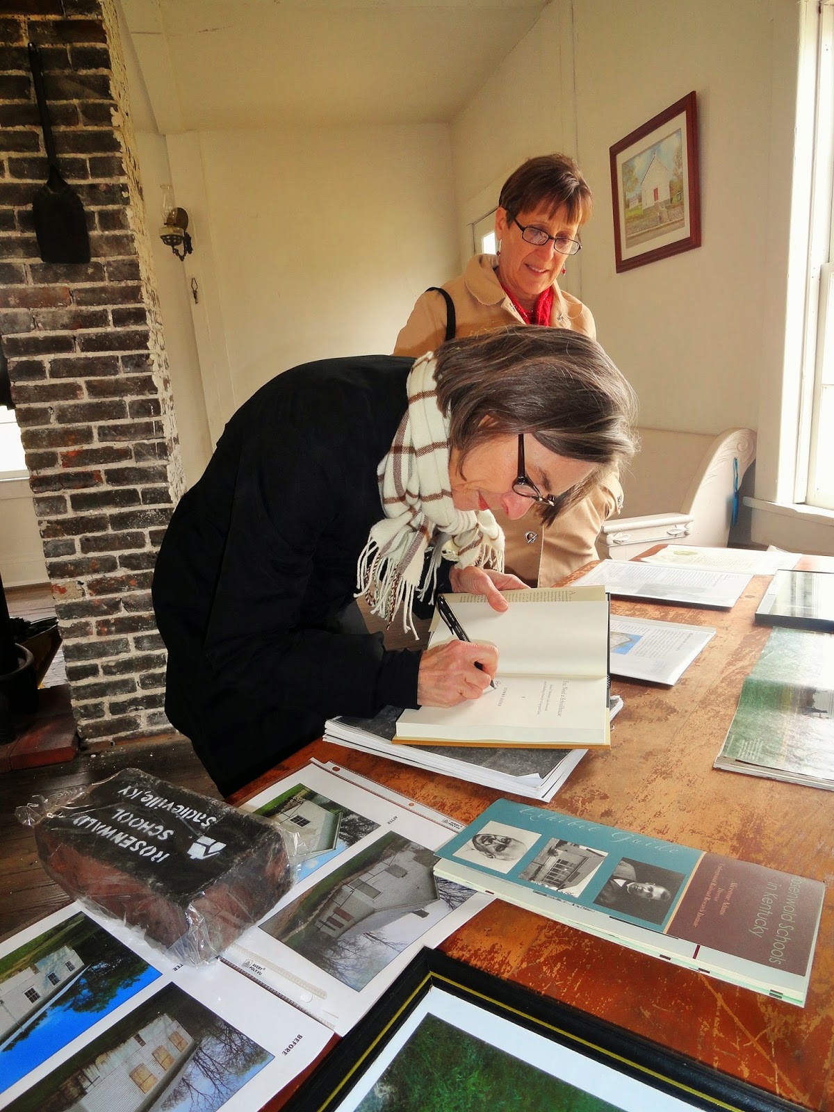 Here are a few pictures of Stephanie and David Deutsch, Cindy Foster and Mayor Claude Christensen. In the second picture, David is looking at the picture of his great grandfather, Julius Rosenwald. In the third picture, Stephanie is signing her book. It was a lovely visit and we felt so pleased that Stephanie and David appreciated our efforts to preserve this important part of history.