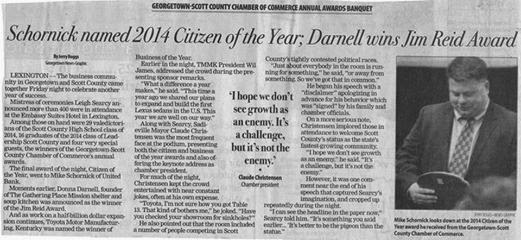 Claude is the president of the Scott County Chamber of Commerce this year. He would be the keynote speaker. Last year he was asked to announce the winner of one of the awards. He had everyone rolling in the aisles. Throughout this year people have been telling him how they were anxiously awaiting his speech as president. No pressure there I tell you!! Claude carefully crafted his speech as the comments from others who would attend increased.